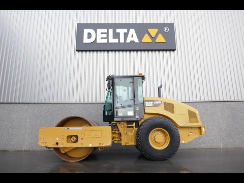 Caterpillar CS64B Vibrating Single Drum Roller, 4 cylinder turbocharged Caterpillar C4.4 ACERT Technology engine with 131HP (97,9kW), E-rops cab with air conditioning, 12,300 Kg operating weight, drum drive, 2 speed hydrostatic transmission, 2.13 Mtr drum width, drum scrapers, 2 step vibrating, Cat MDP Compaction Control, front and rear work lights, 23.1-26 Triangle tyres 90% remaining, CE marked. Machine comes straight out of work and is in clean condition. Inspections are welcome.